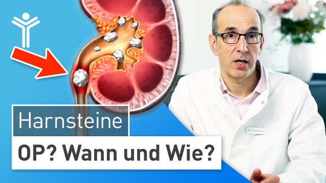 Wann müssen Nierensteine & Harnleitersteine operativ entfernt werden und welche Behandlungsmöglichkeiten gibt es? Urologe Dr. Pedram Derakhshani von der KLINIK am RING - Köln erklärt was zu tun ist, wenn Harnsteine nicht spontan abgehen und starke Schmerzen (Koliken) verursachen. Erfahren Sie wie eine endoskopische Entfernung von Harnsteinen abläuft und in welchen Fällen eine Stoßwellenbehandlung (ESWL) zum Einsatz kommt.